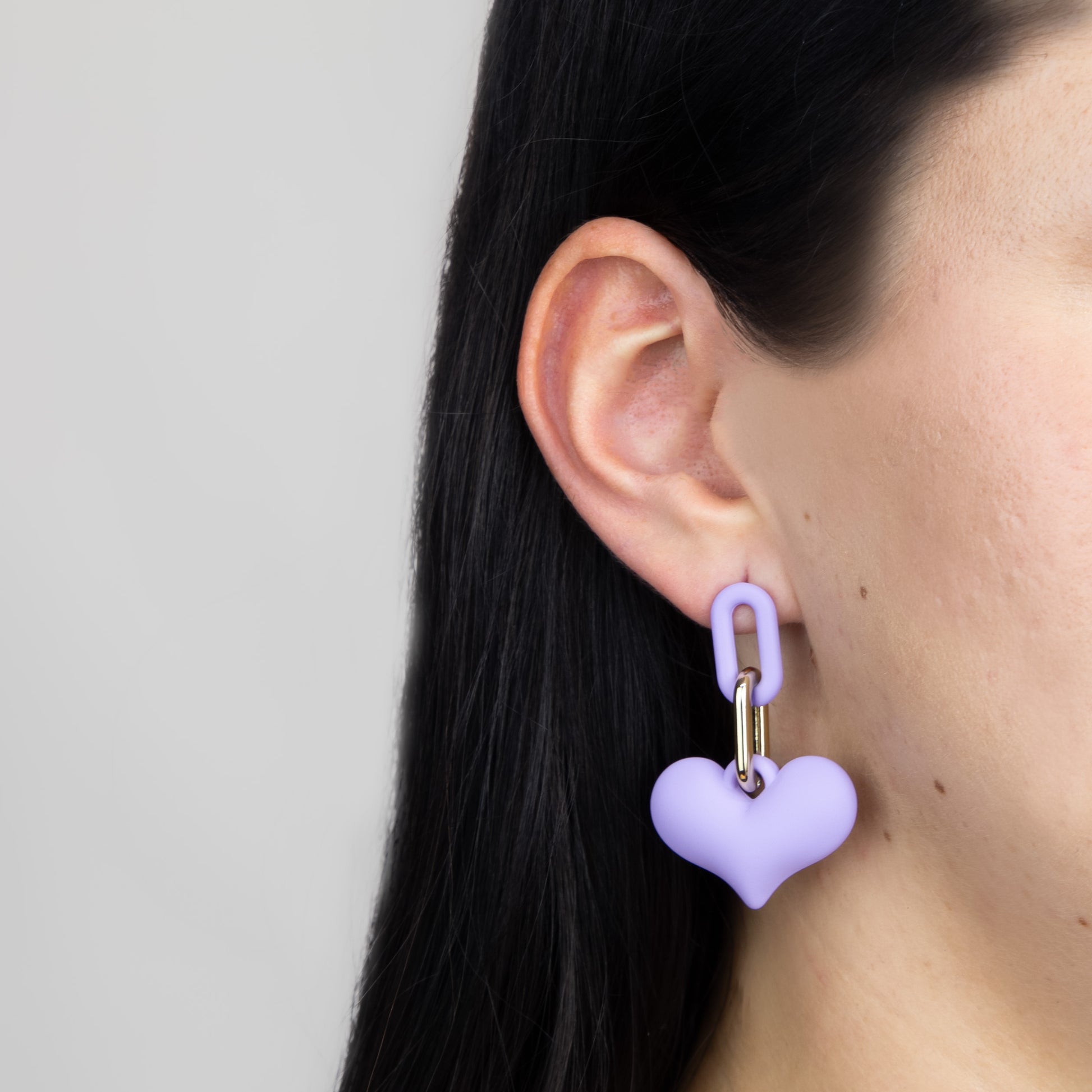 Cercei inimă suspendată cu textură de silicon - Mov