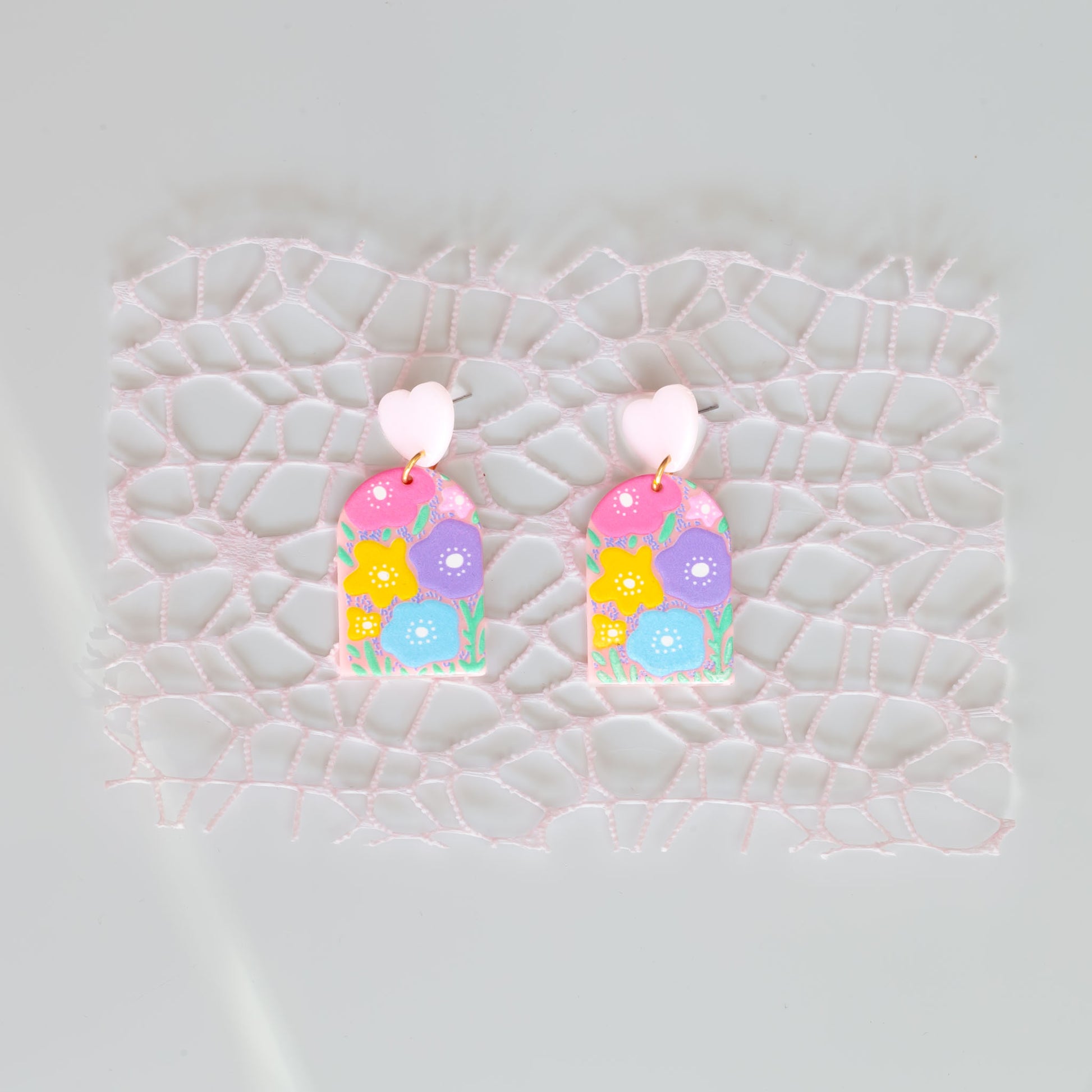 Cercei lovely mural cu motiv flori - Roz Bombon