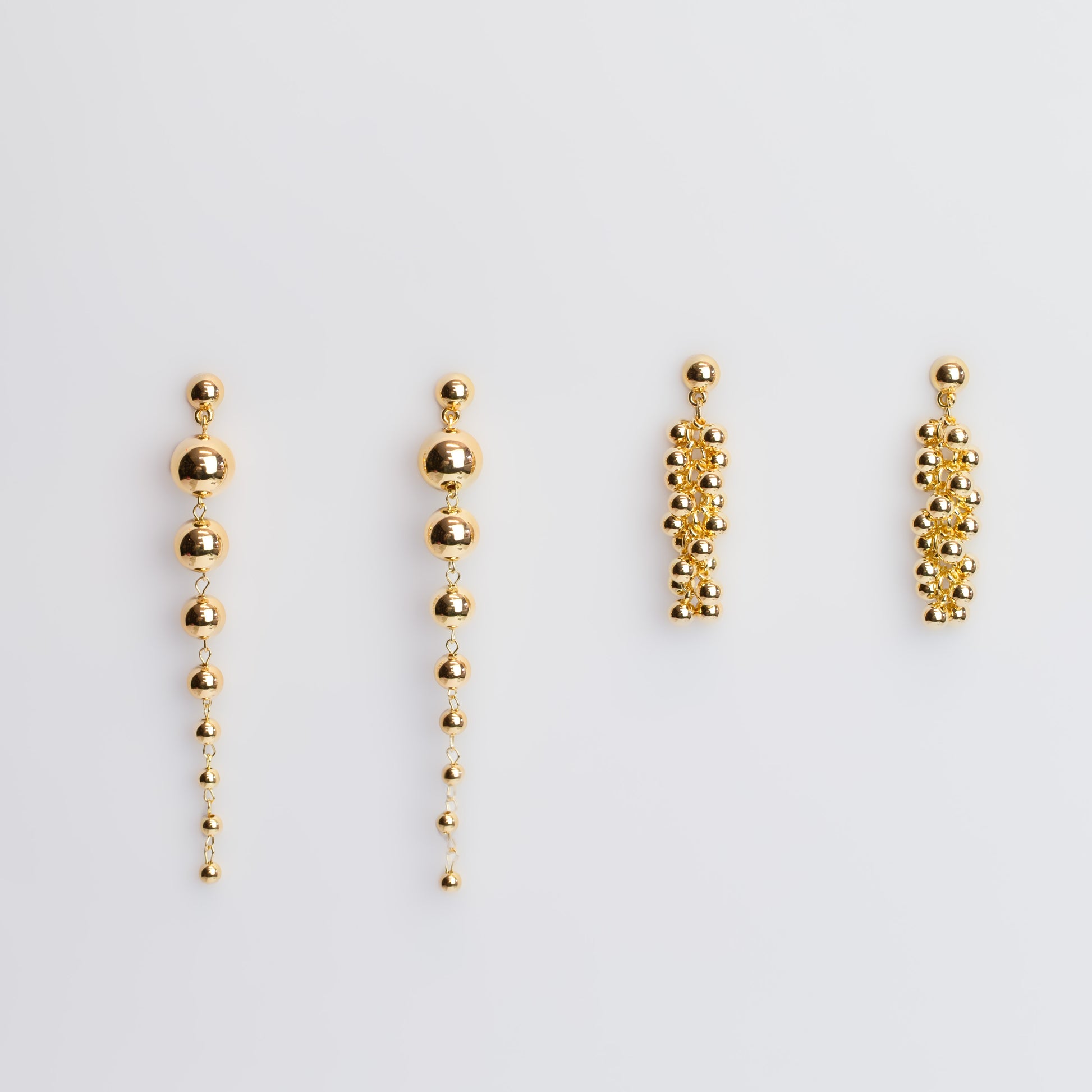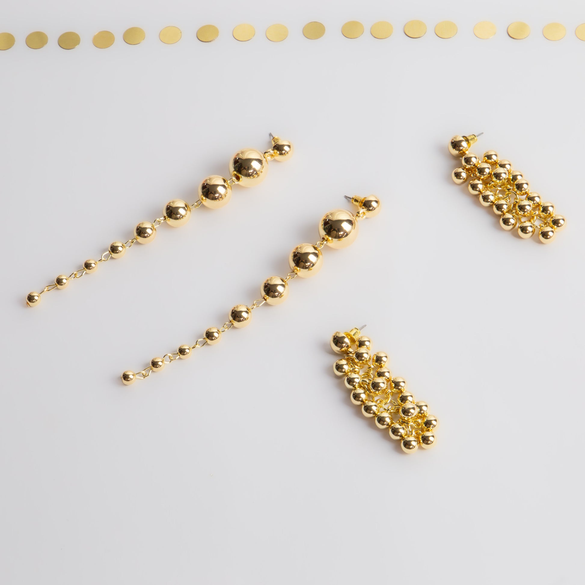 Cercei lungi cu biluțe berry drop, set 2 - Auriu