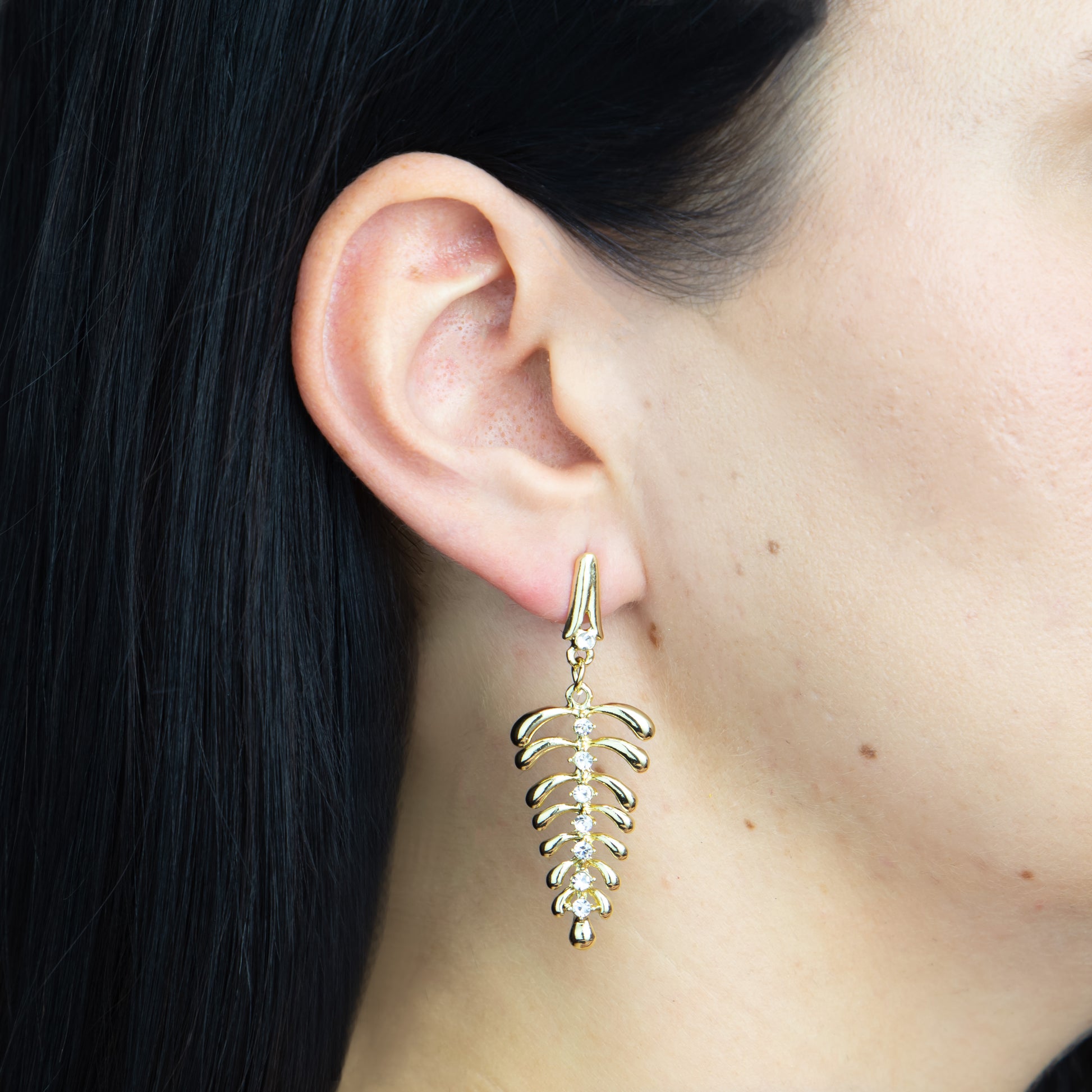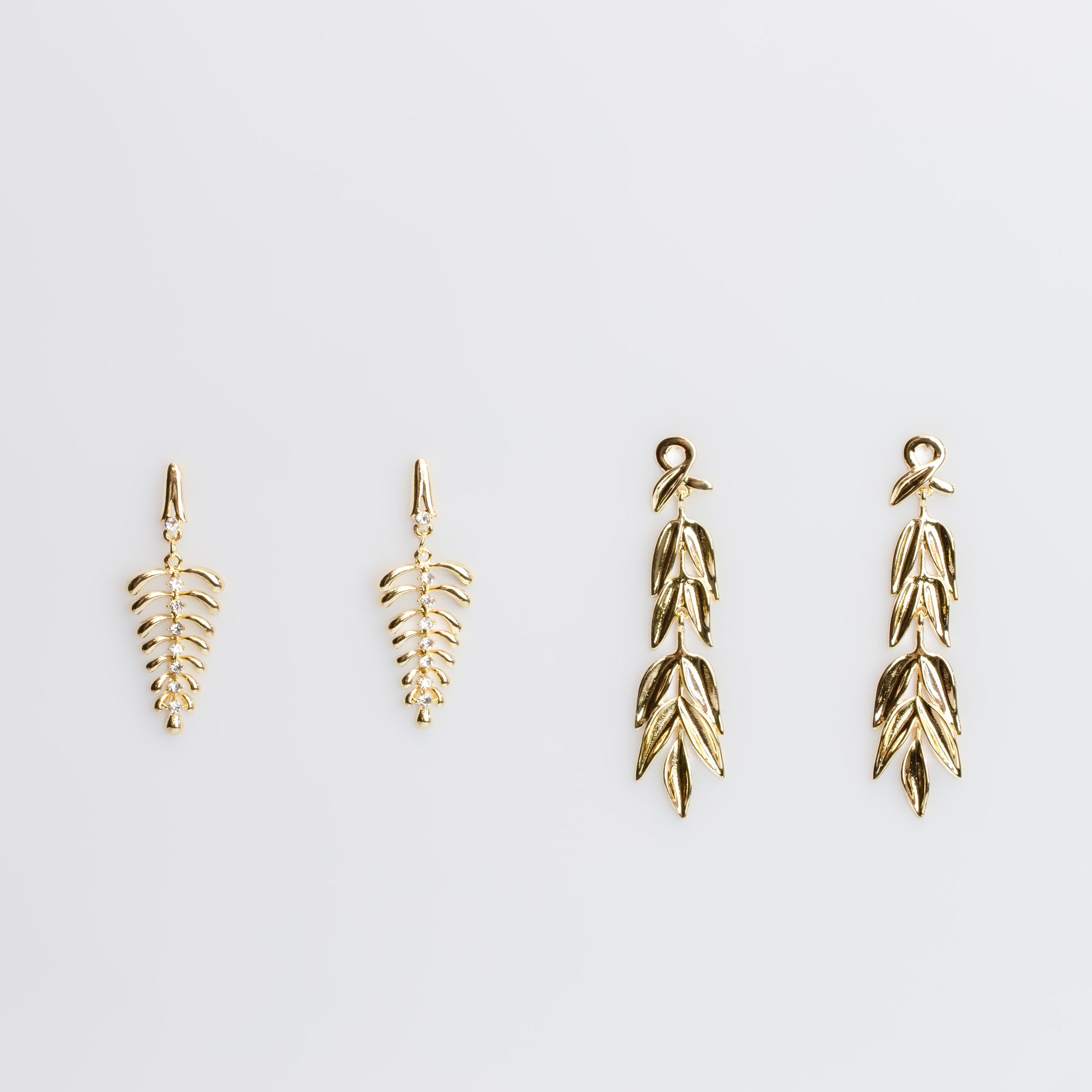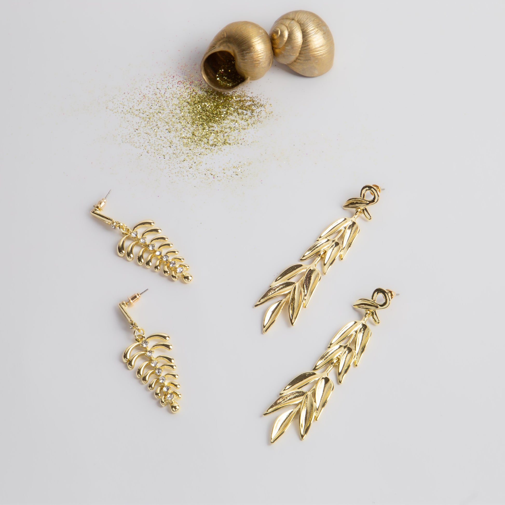 Cercei metalici în forma de frunză cu pietre, set 2 - Auriu