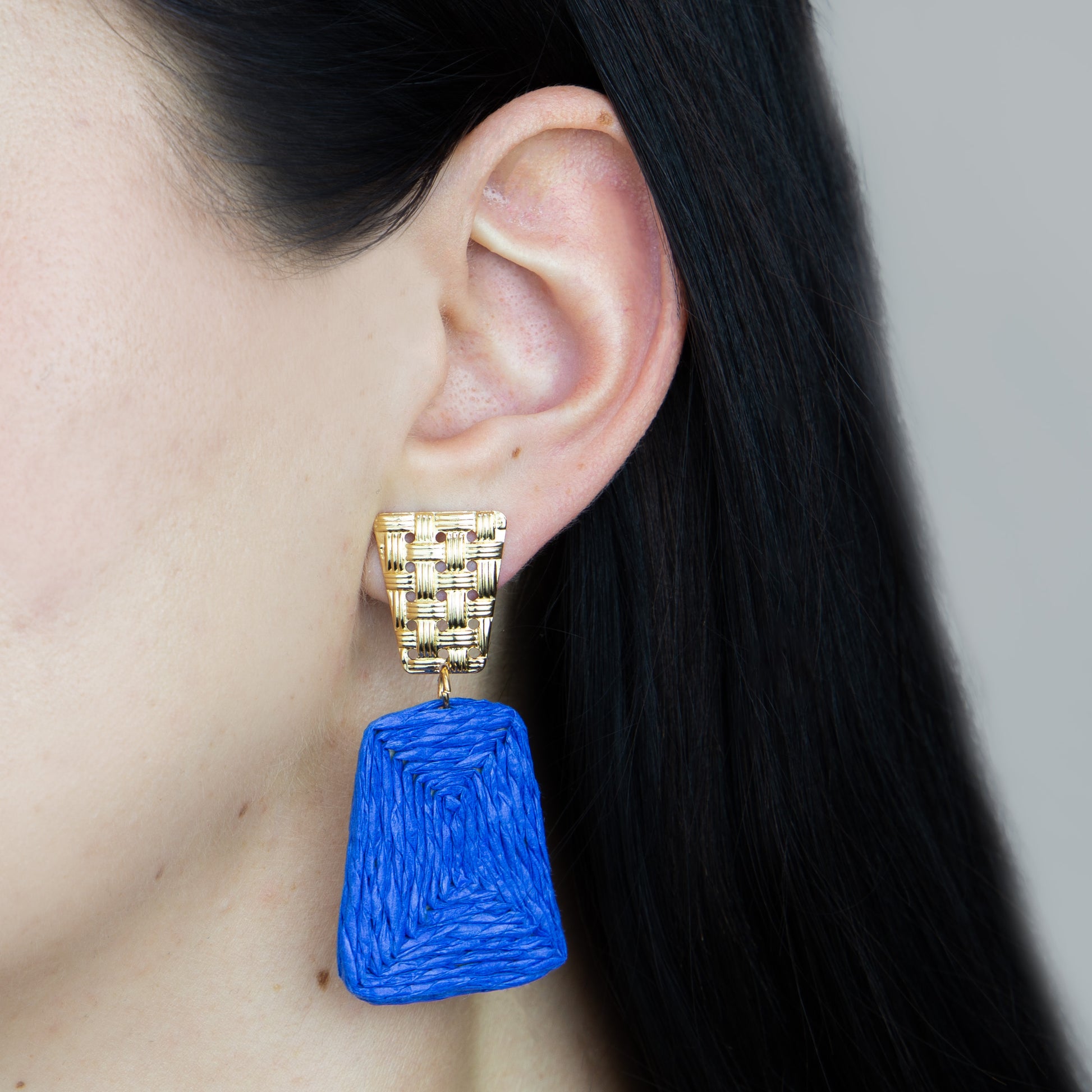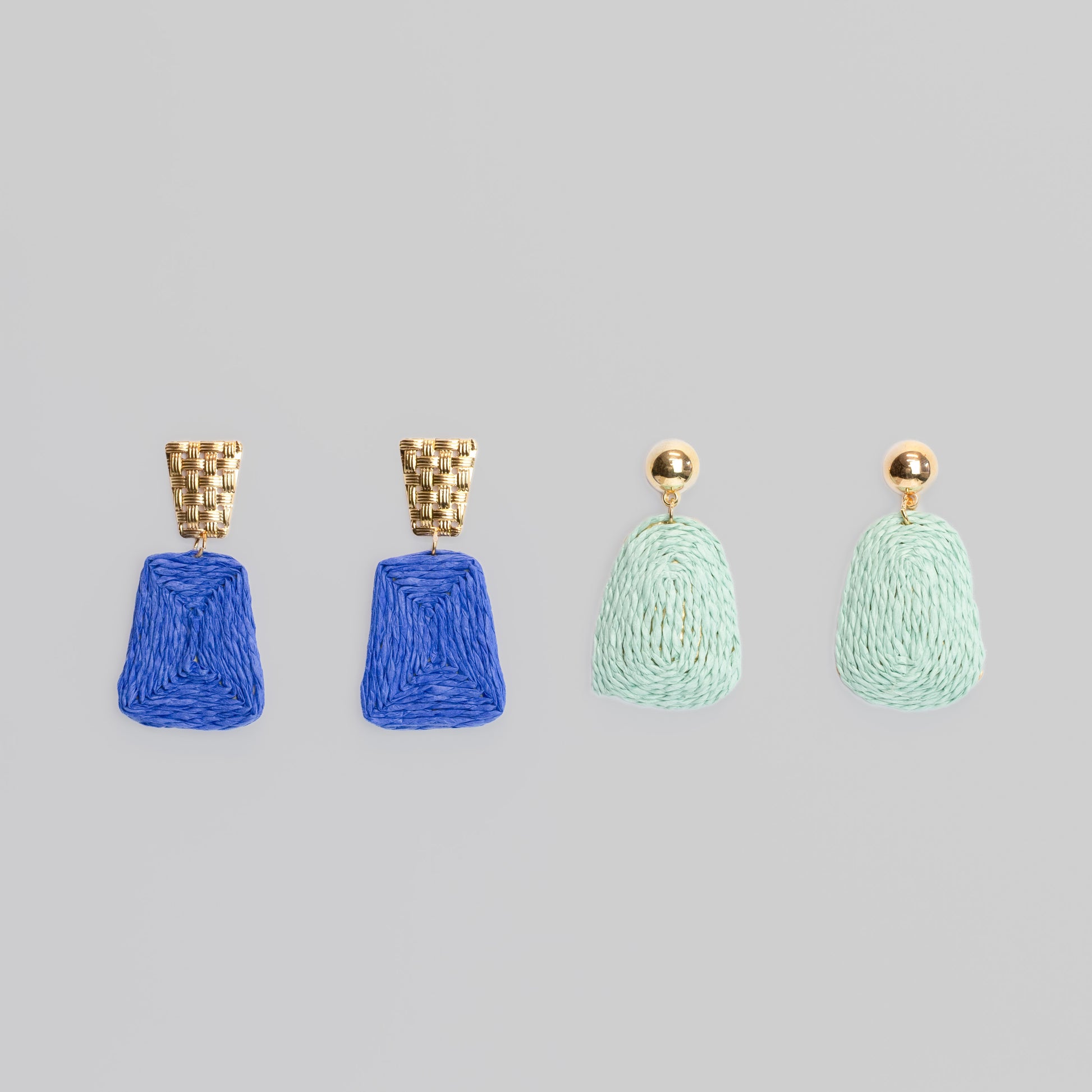 Cercei organic shapes din ratan, set 2 - Albastru, Turcoaz