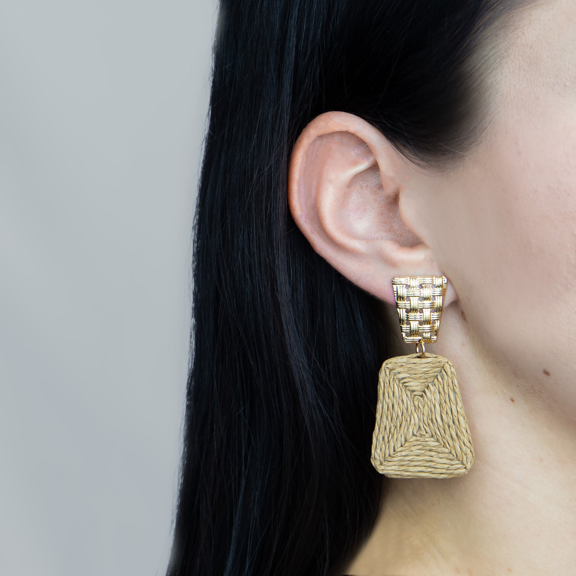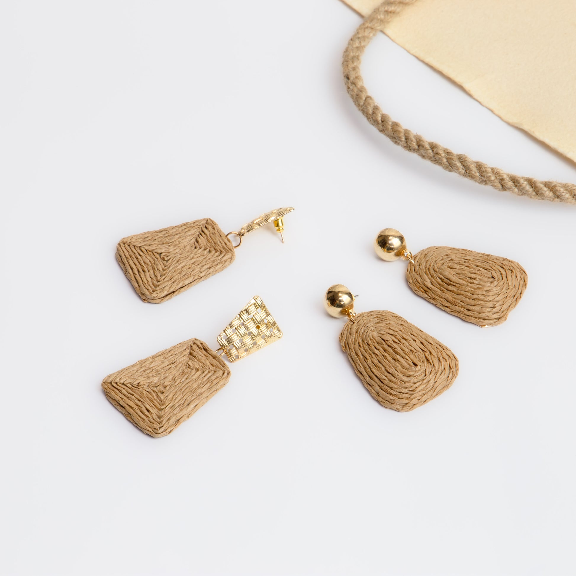 Cercei organic shapes din ratan, set 2 - Maro