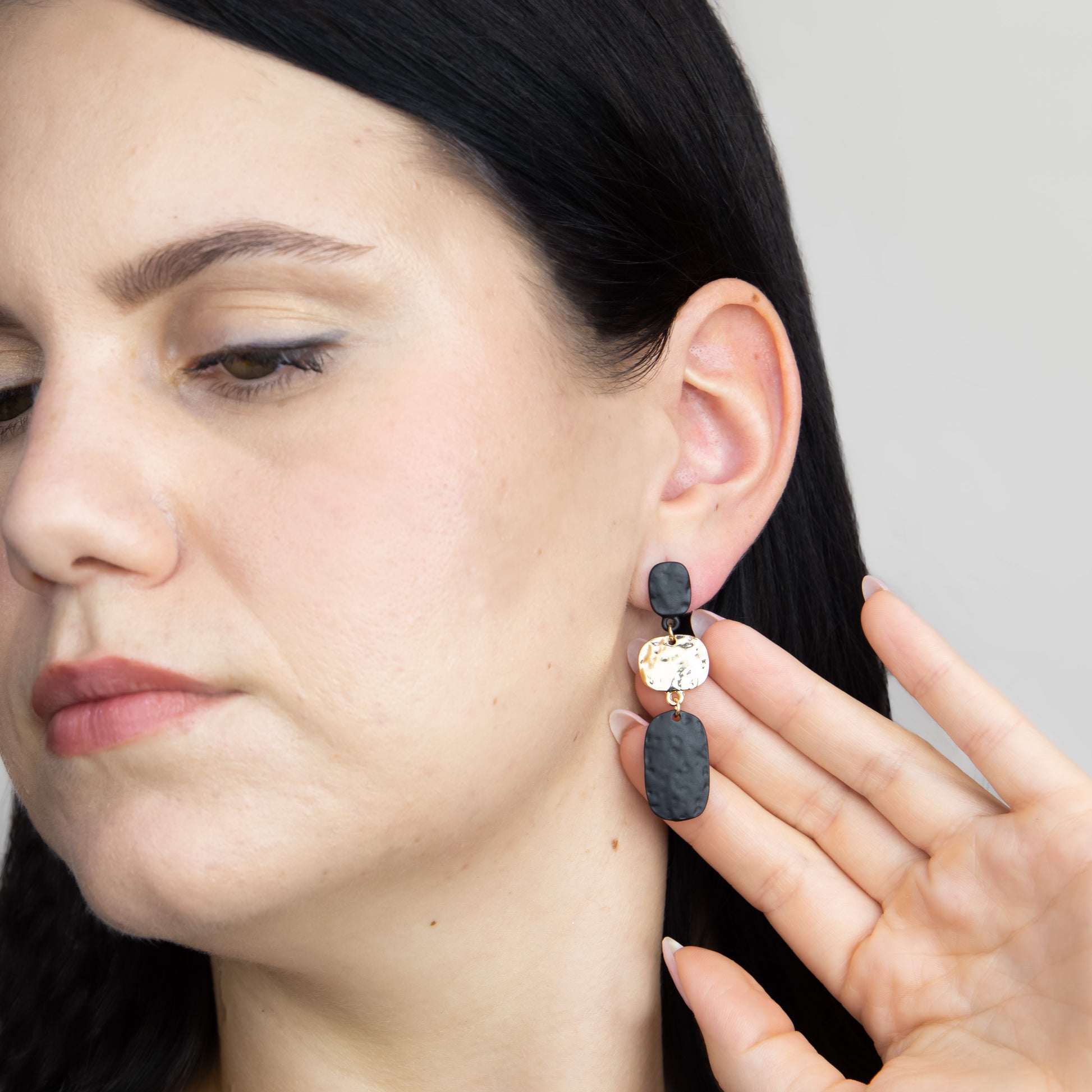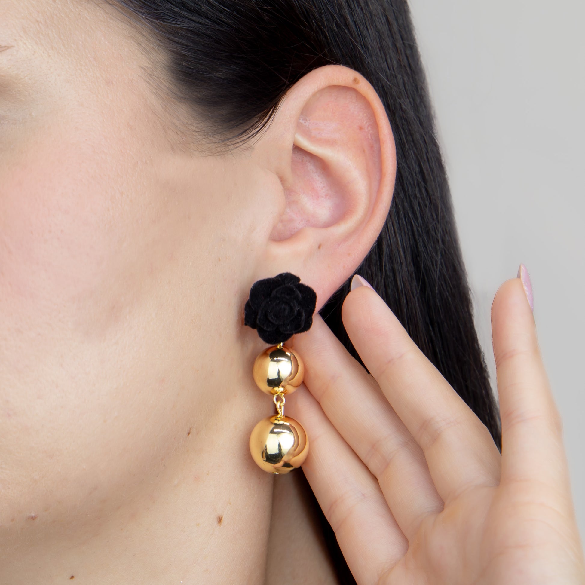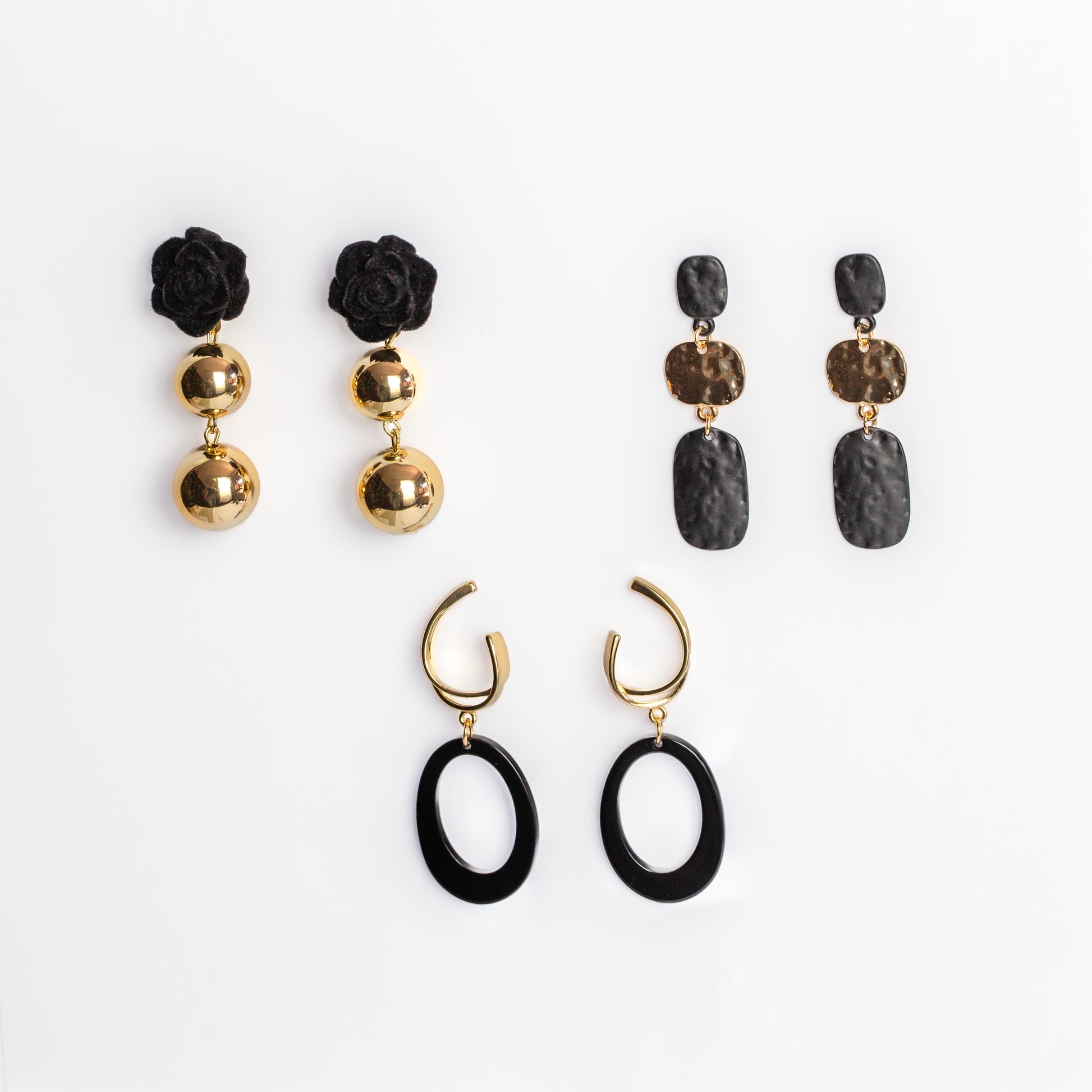 Cercei romantic mix cu biluțe, flori și textură de silicon, set 3 - Auriu, Negru