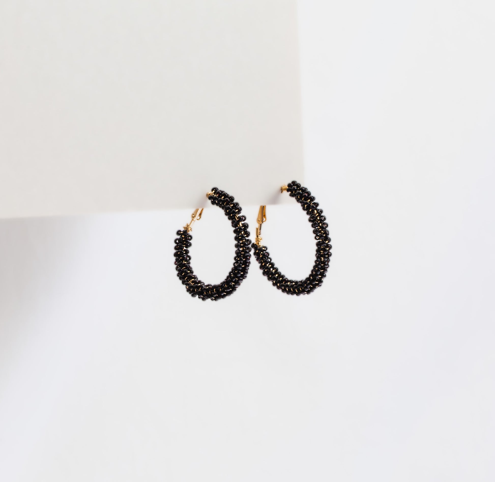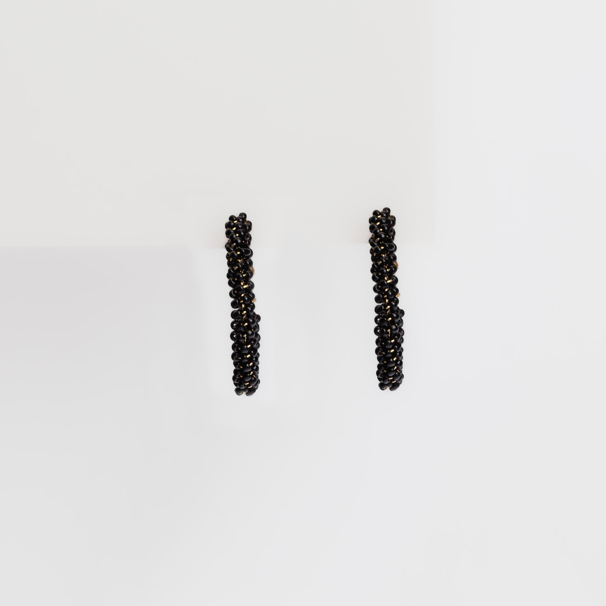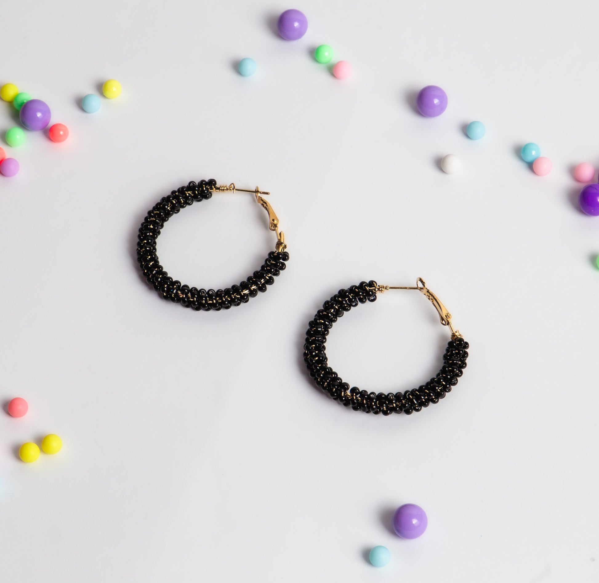 Cercei rotunzi aurii, cu mărgele mici spiralate - Negru