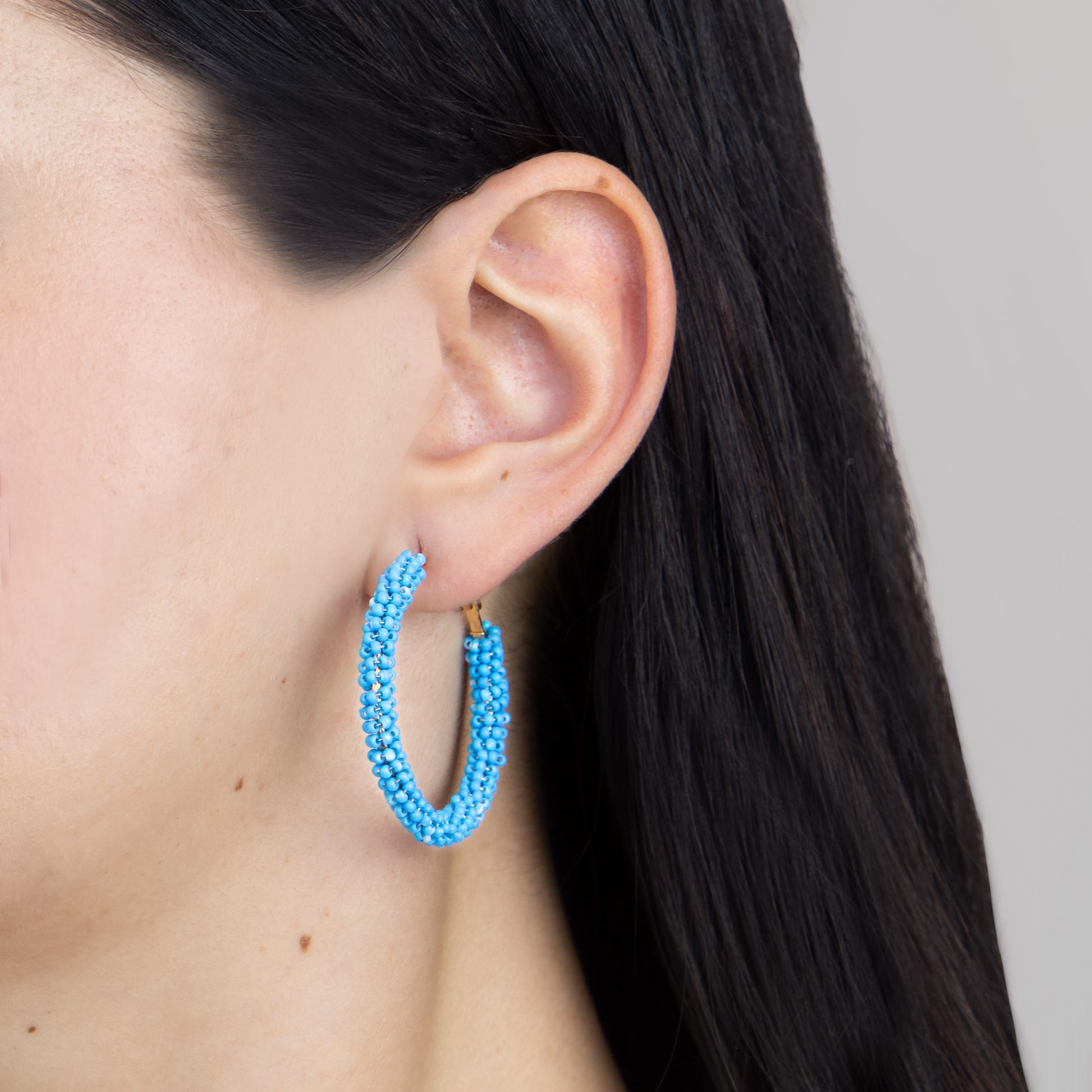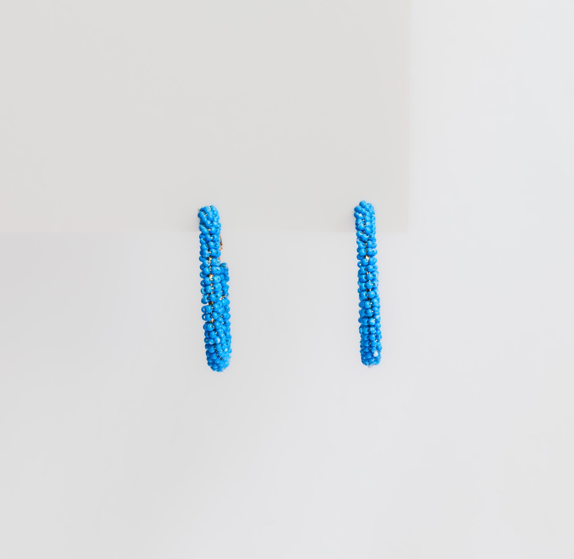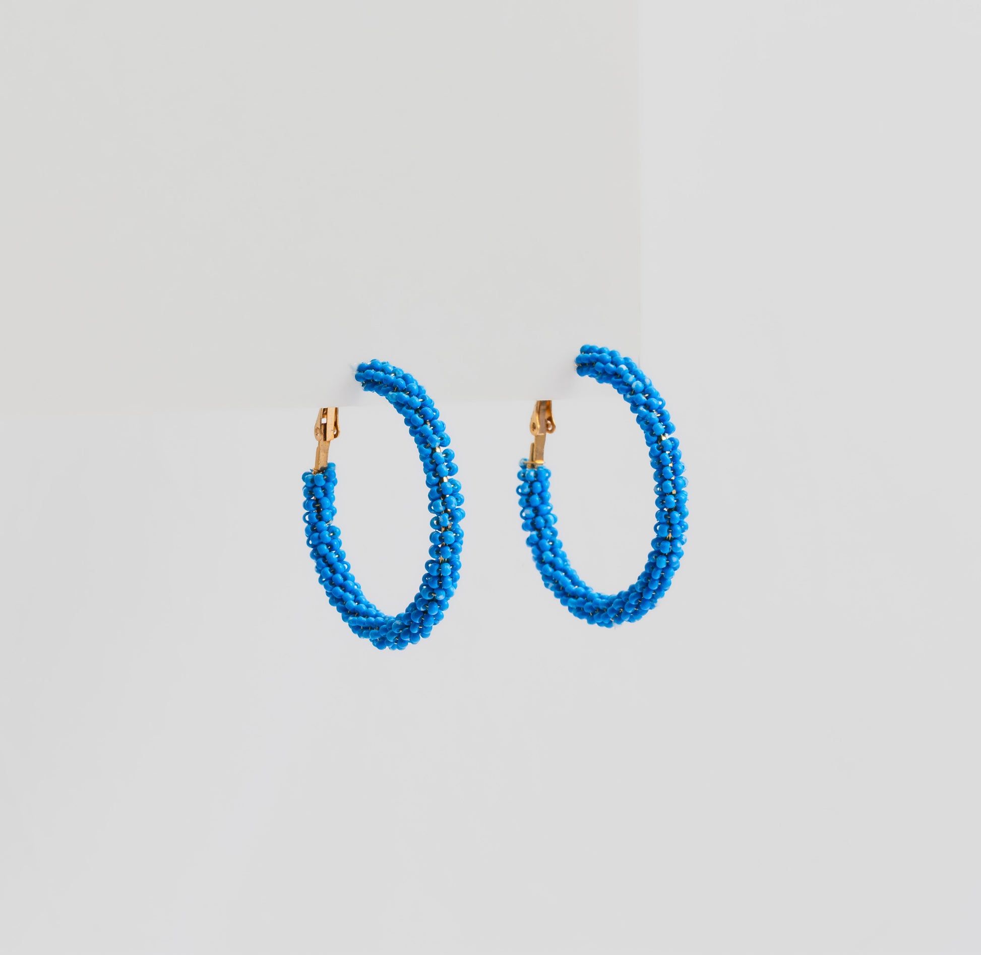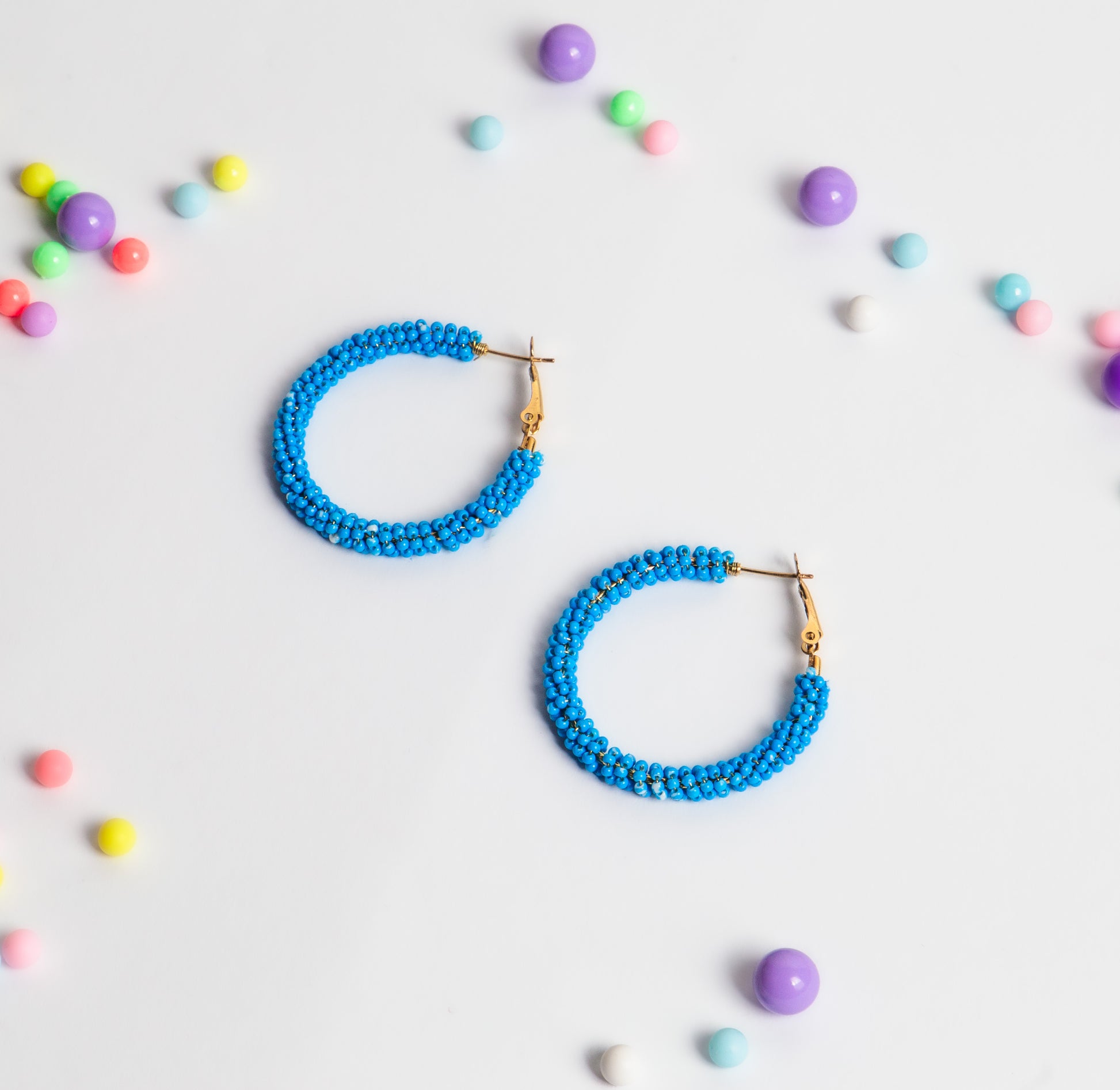 Cercei rotunzi aurii cu mărgele mici spiralate - Albastru