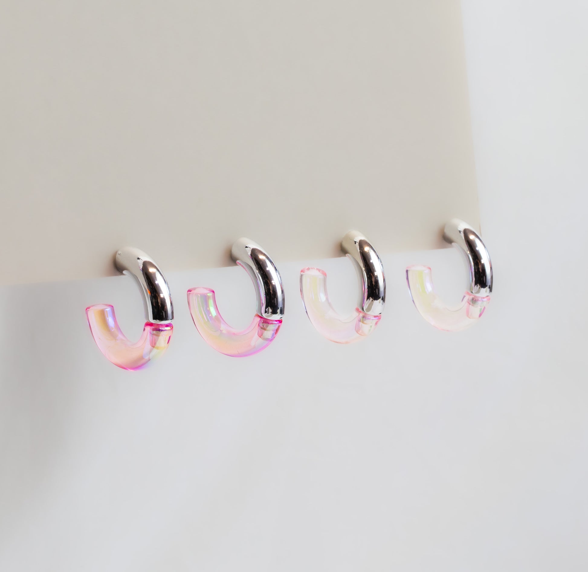 Cercei rotunzi aurora, set 2 - Pink Mix