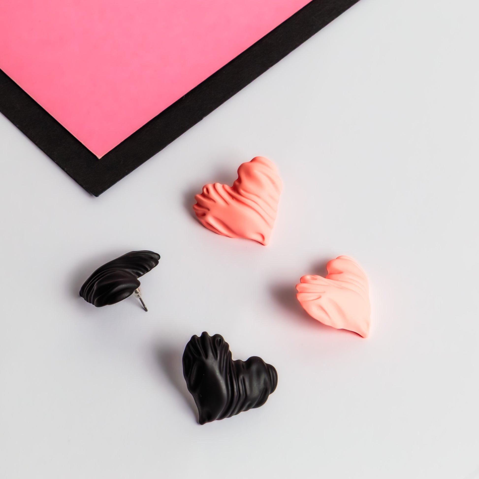 Cercei sweet hearts cu textruă siliconată, set 2 - Roz, Negru