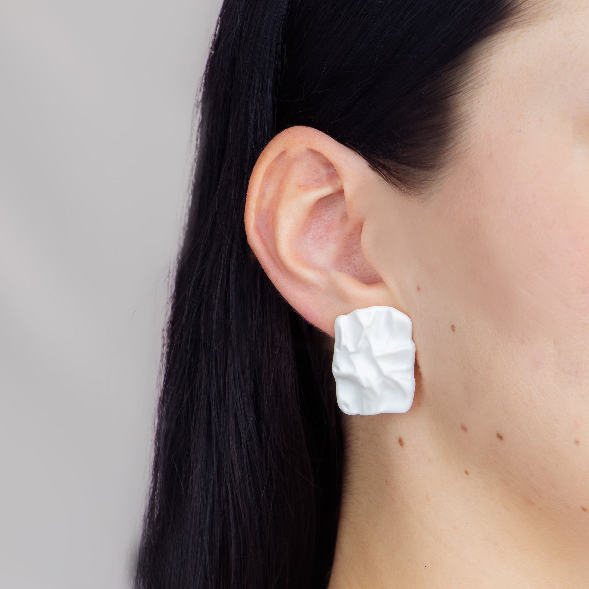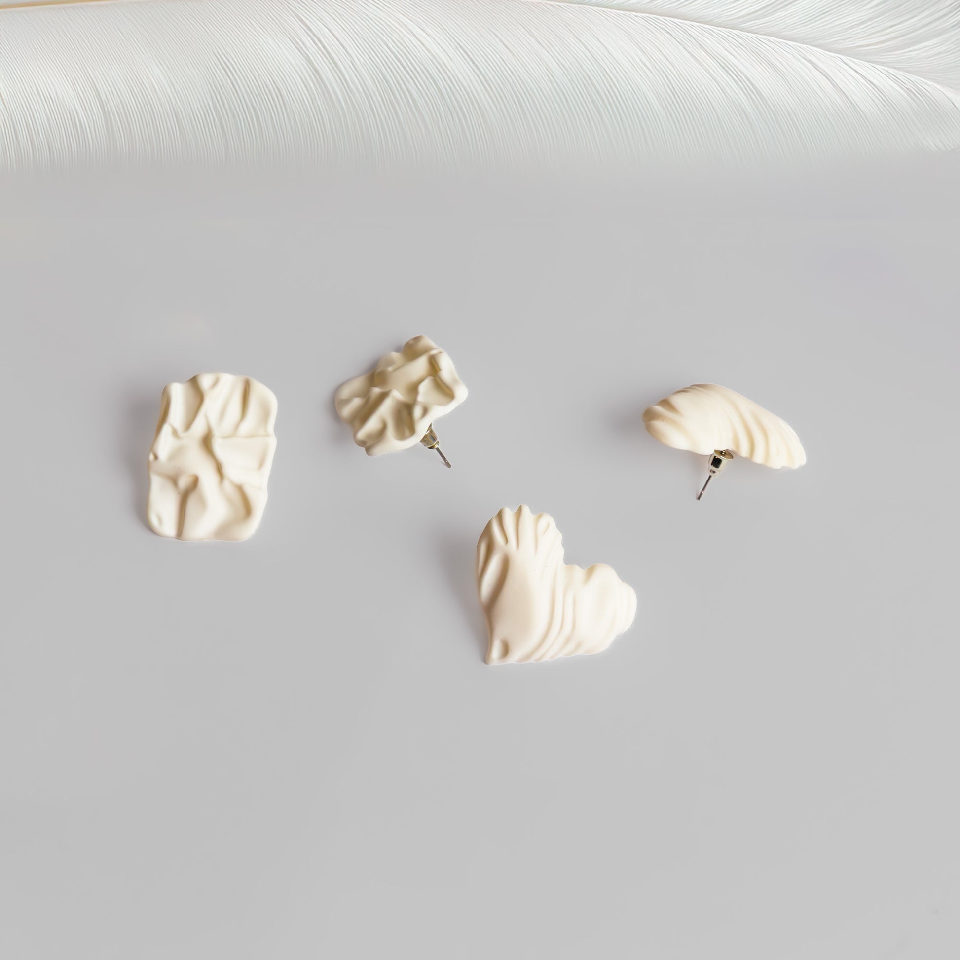 Cercei textured duo cu textruă siliconată, set 2 - Alb