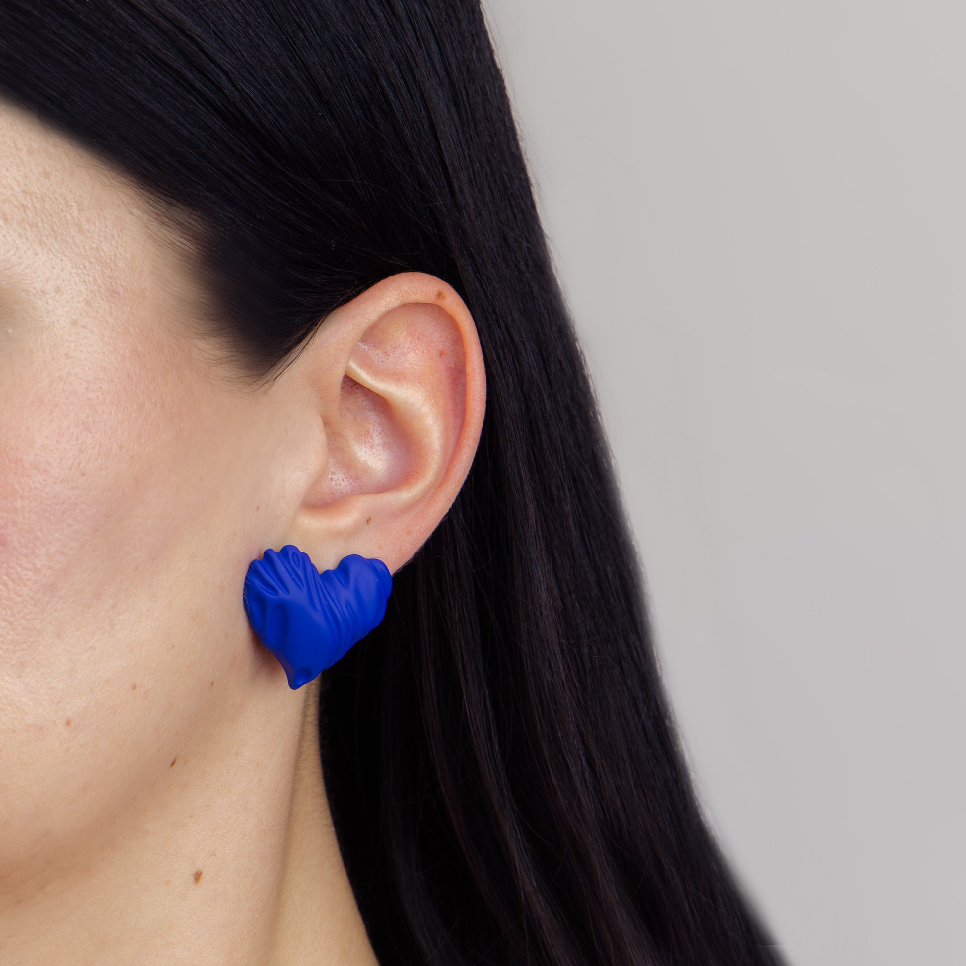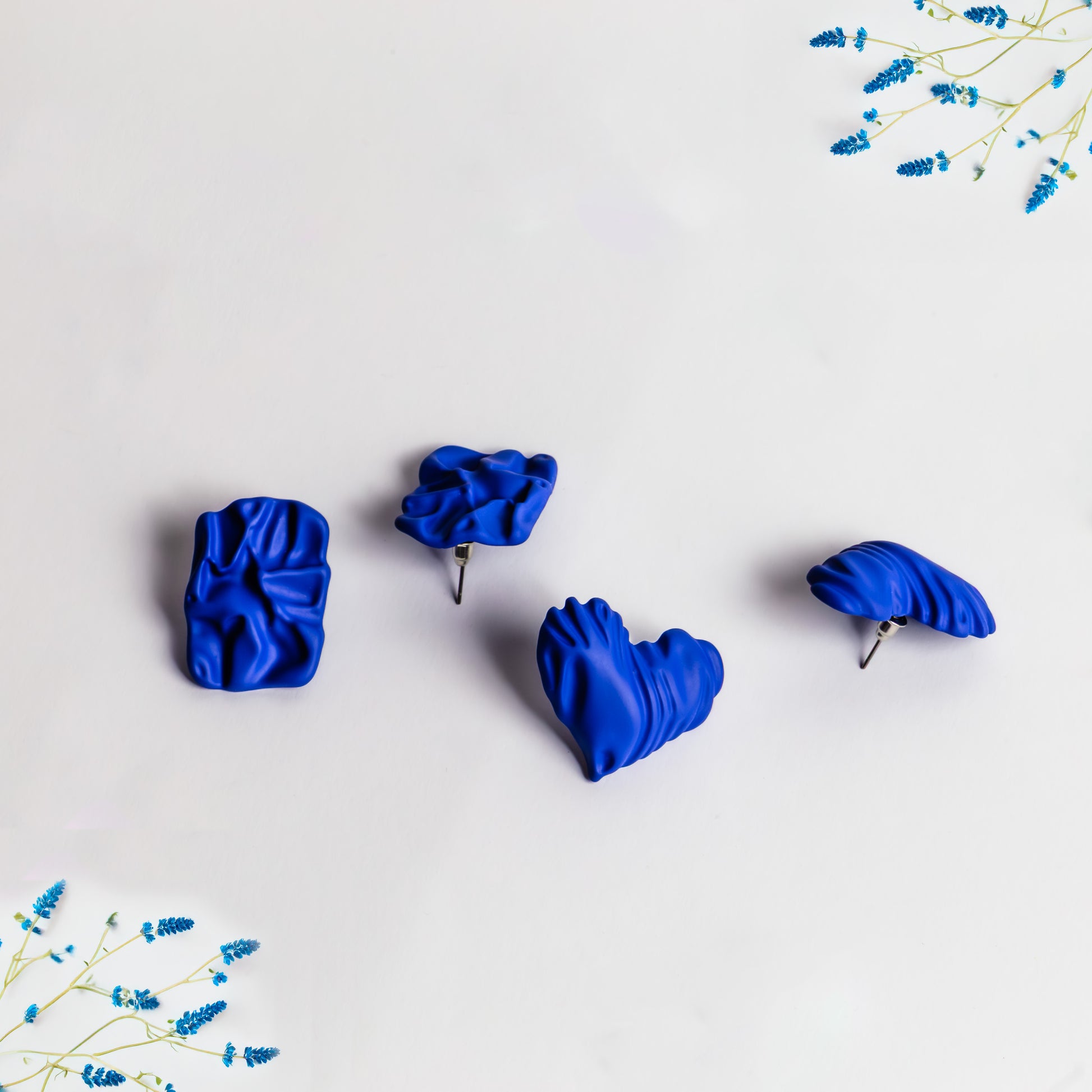 Cercei textured duo cu textruă siliconată, set 2 - Albastru Închis