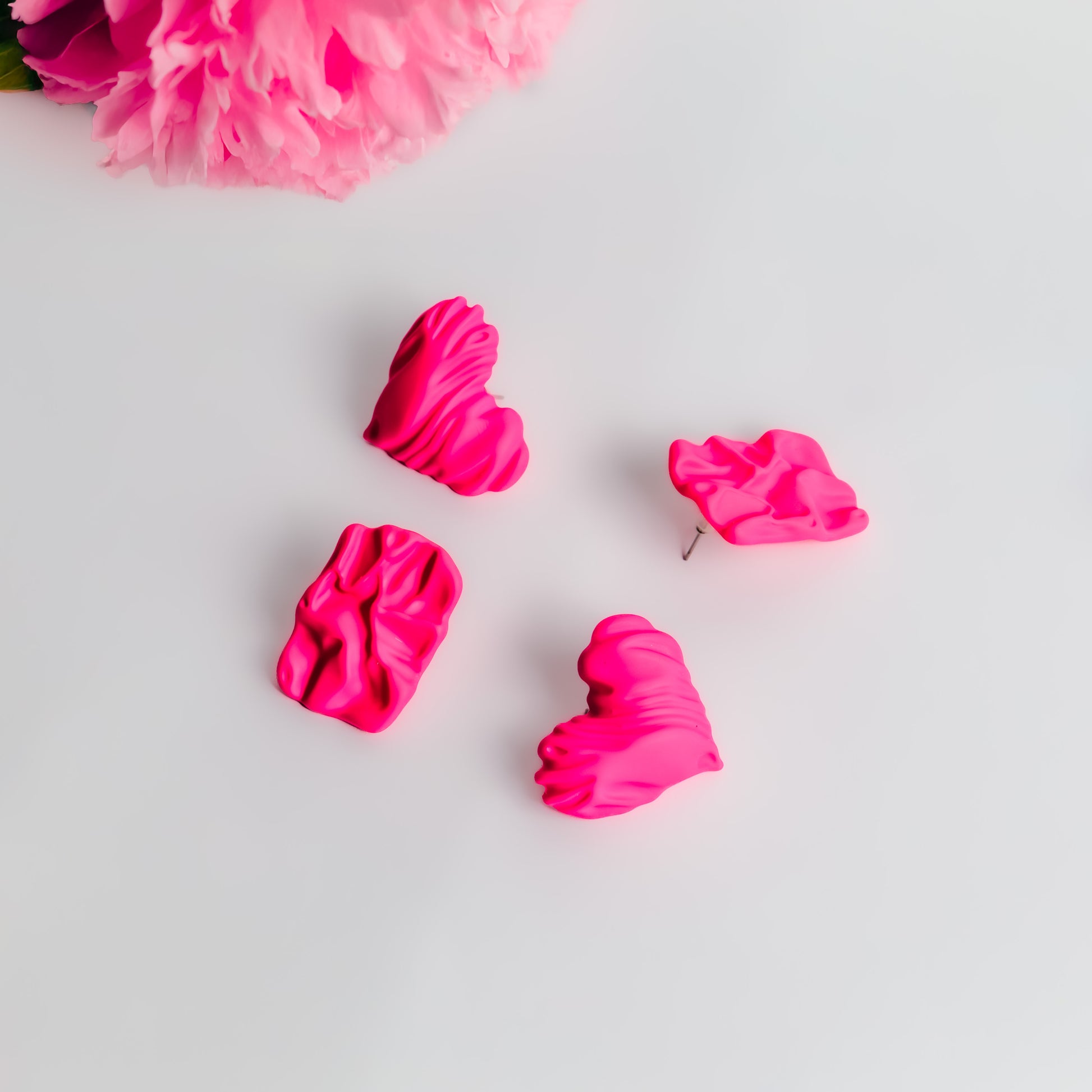 Cercei textured duo cu textruă siliconată, set 2 - Roz