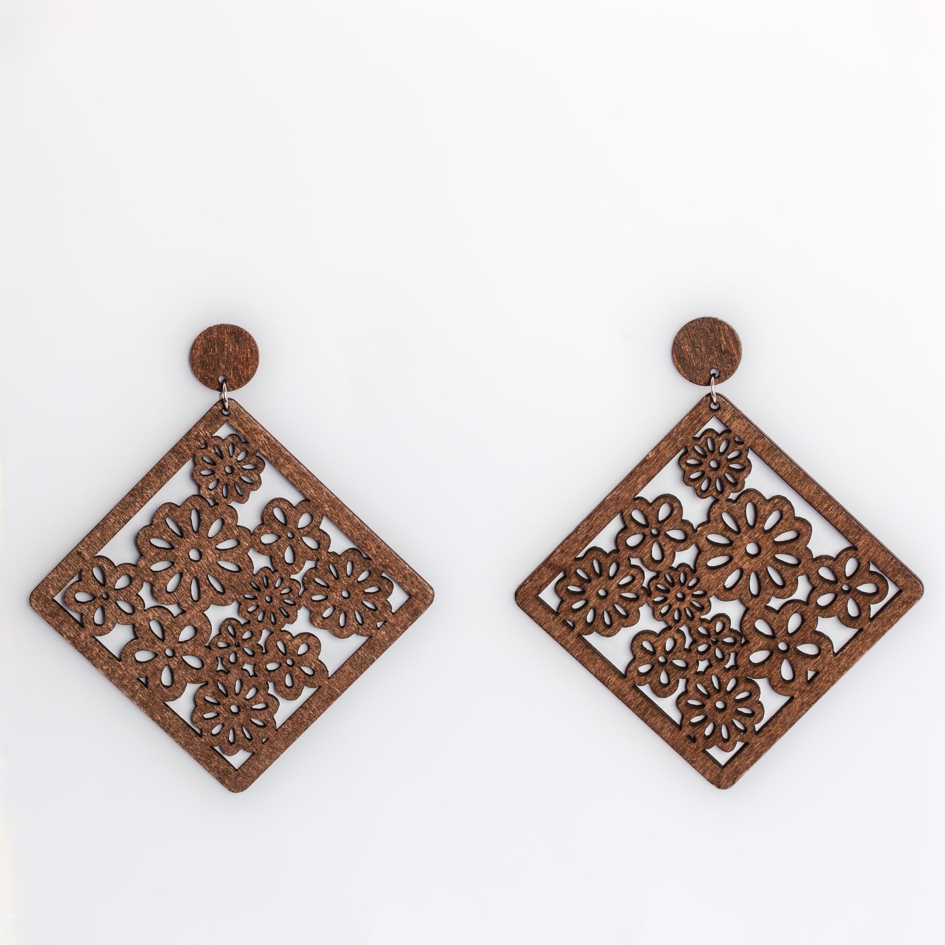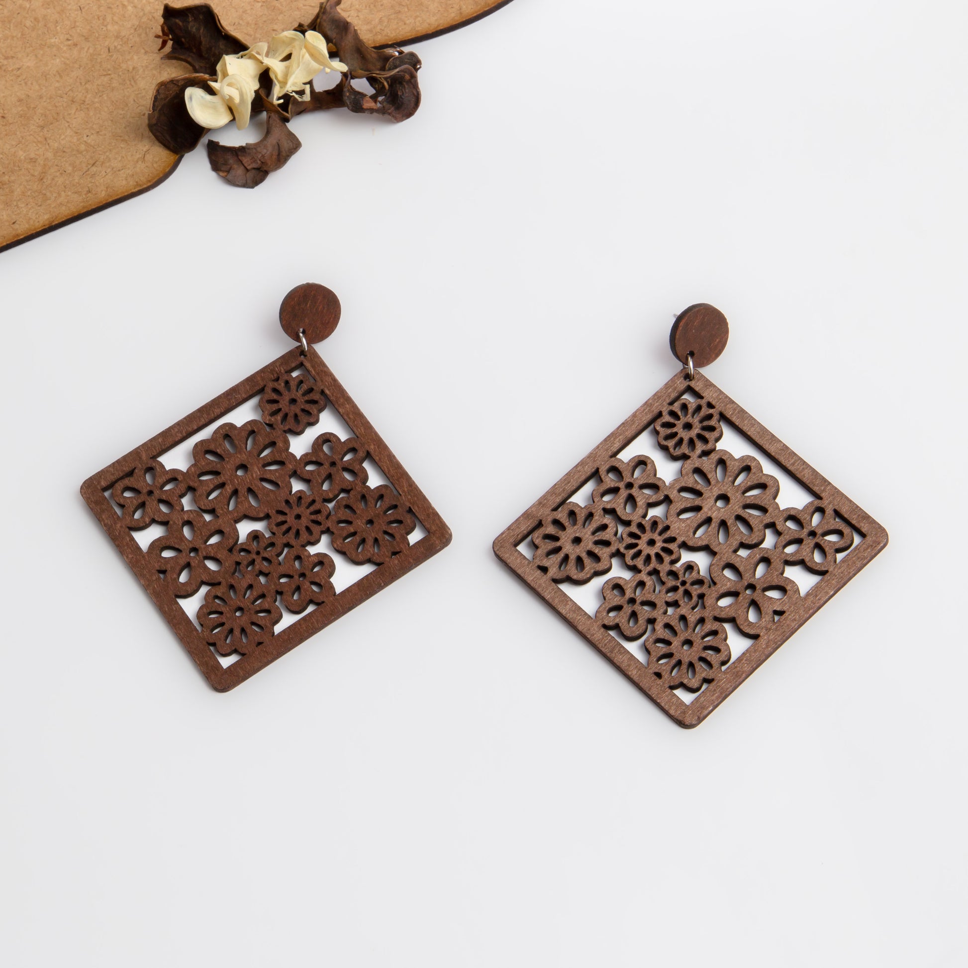 Cercei triangle bloom ușori din lemn - Maro