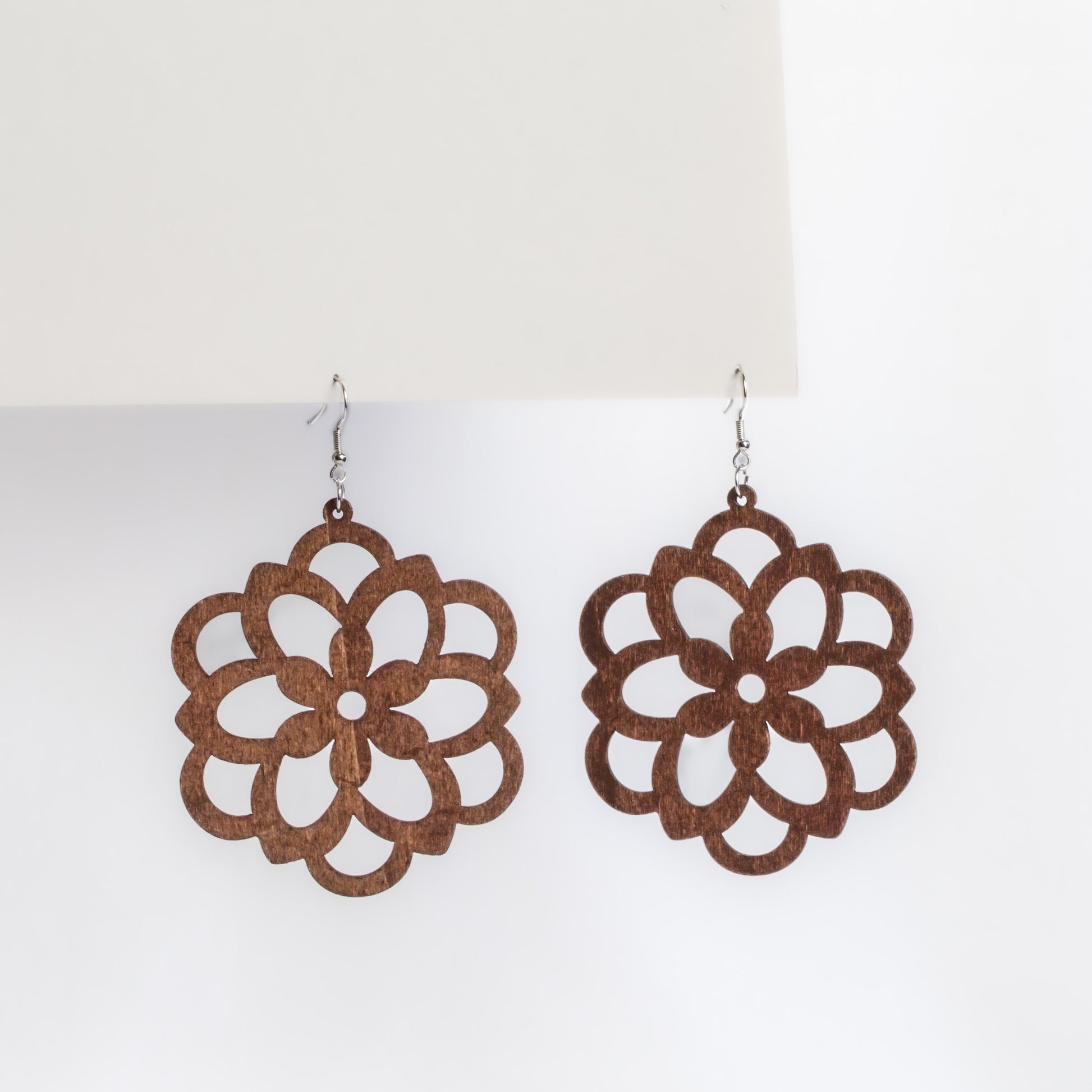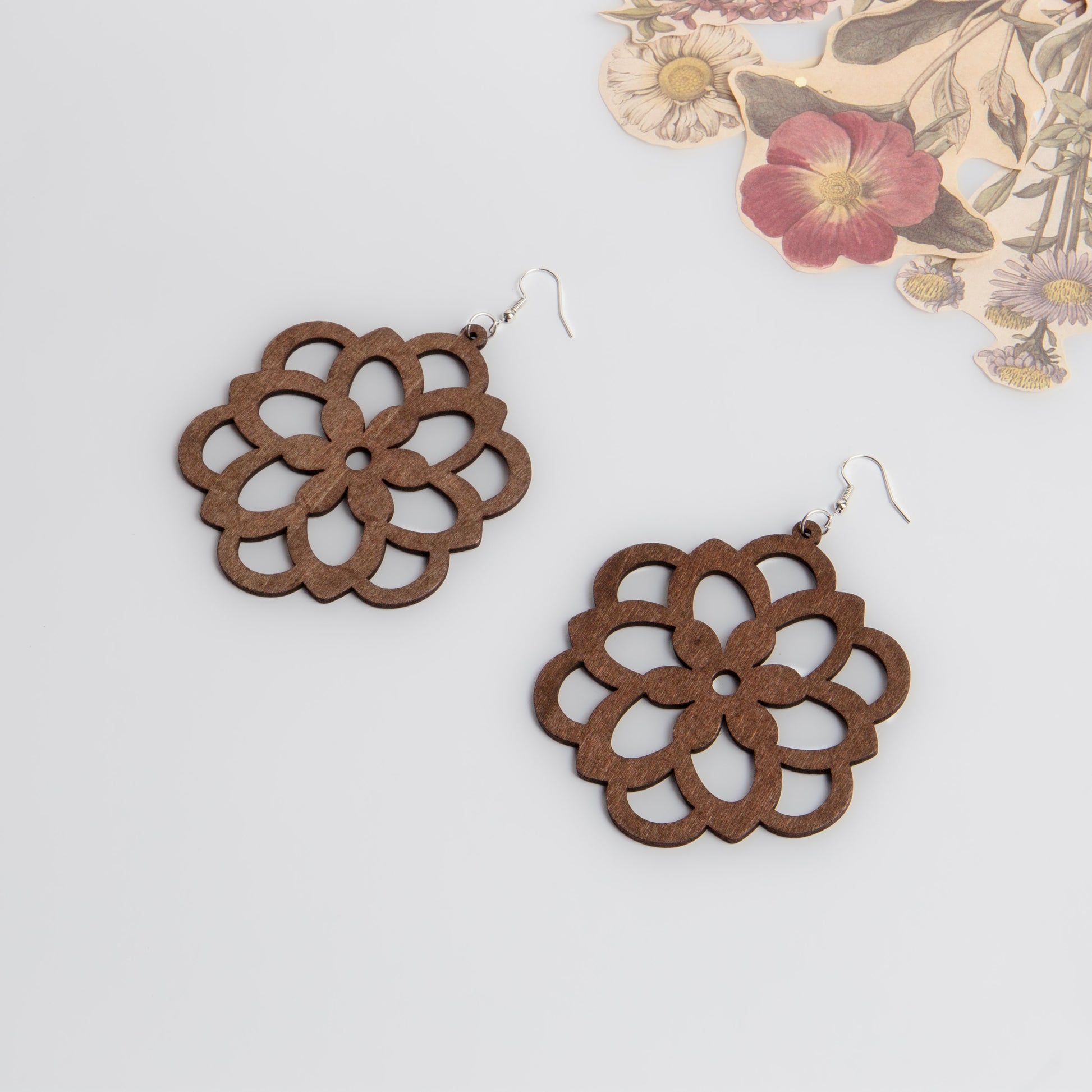 Cercei wild flower ușori din lemn - Maro