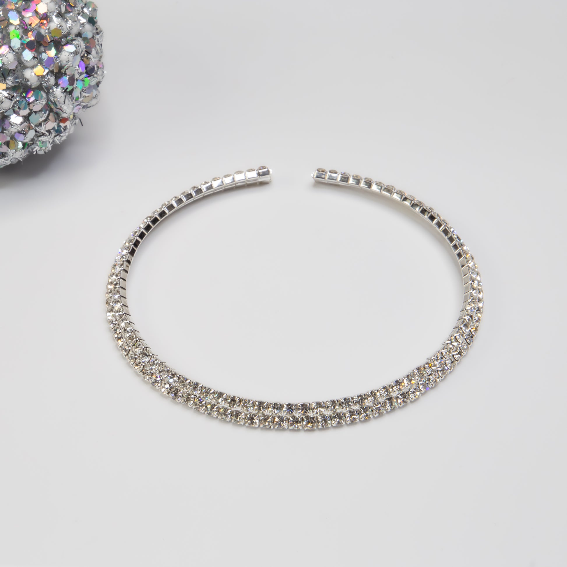 Colier elegant la baza gâtului cu pietre strălucitoare, flexibil, fără închizătoare