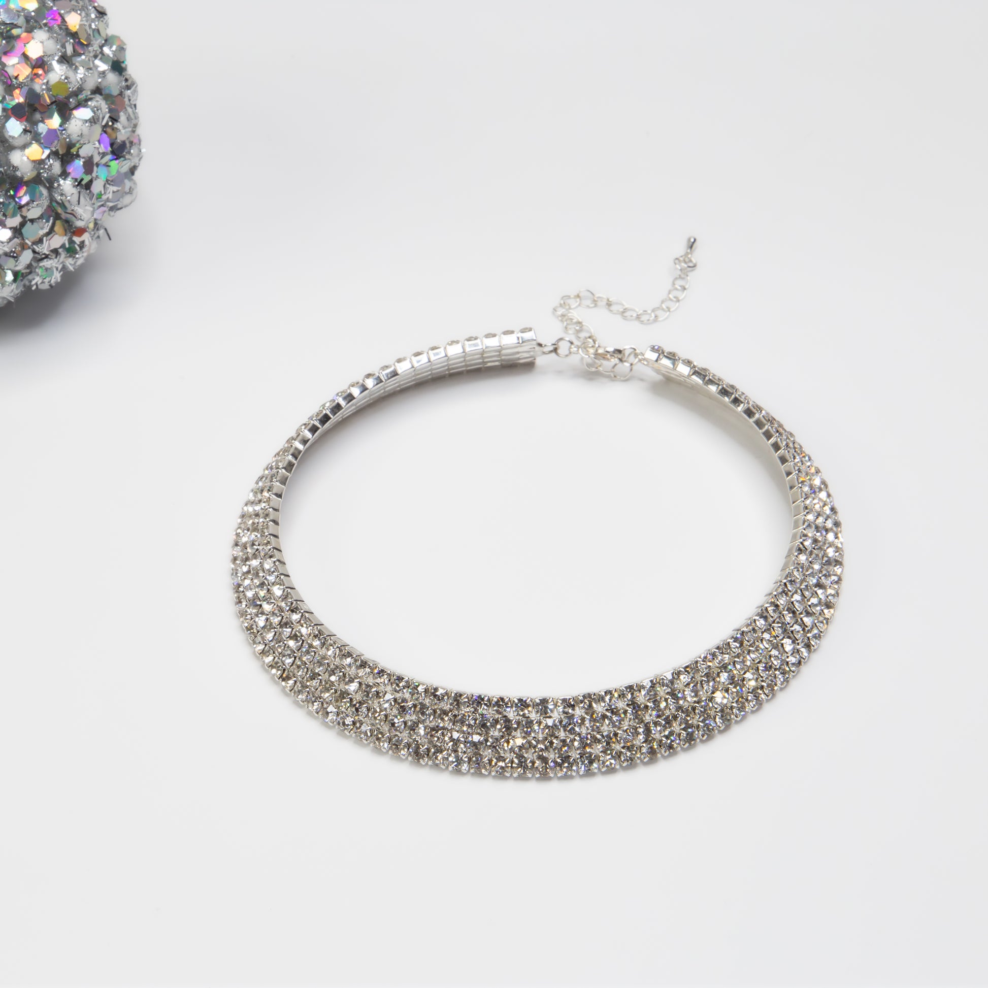 Colier elegant la baza gâtului cu pietre strălucitoare, reglabil