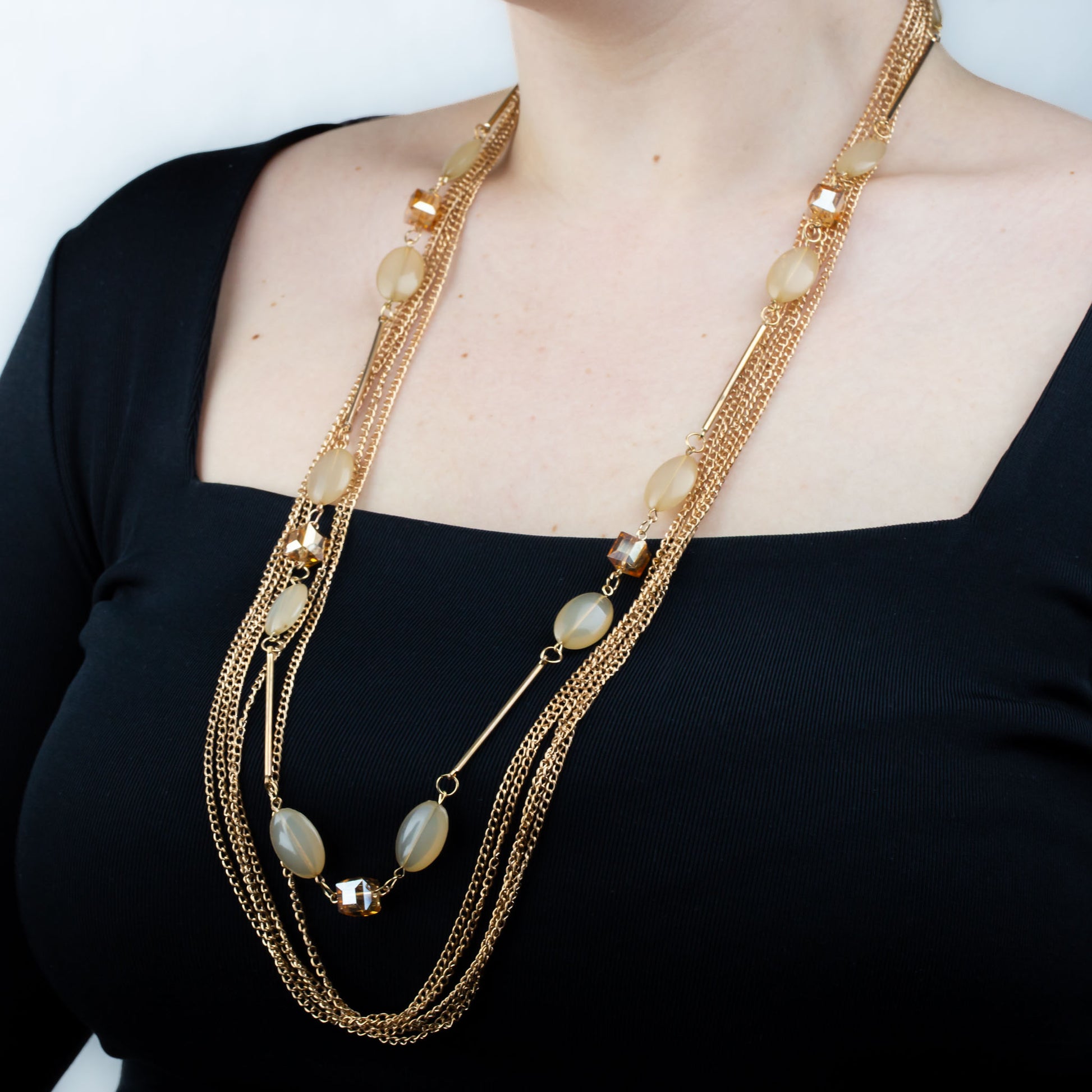 Colier lung multiplu cu mărgele și pietre - Auriu, Bej