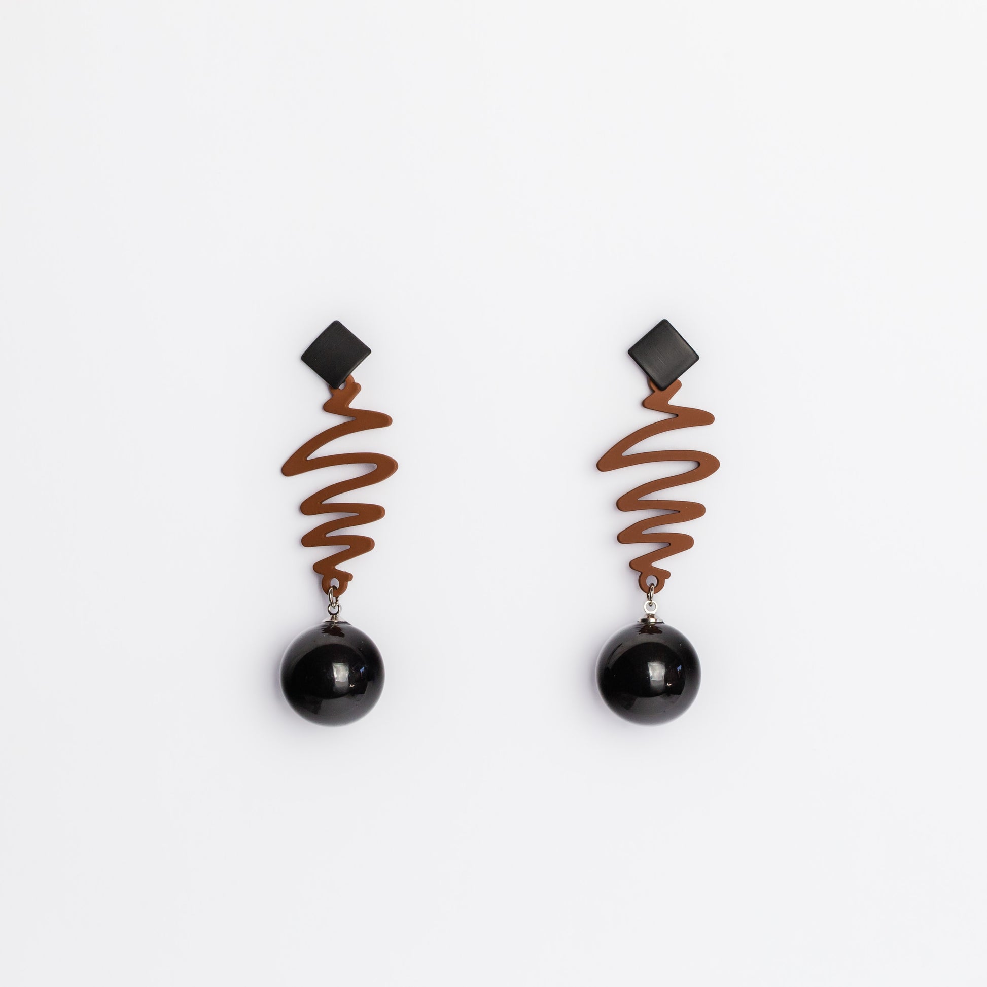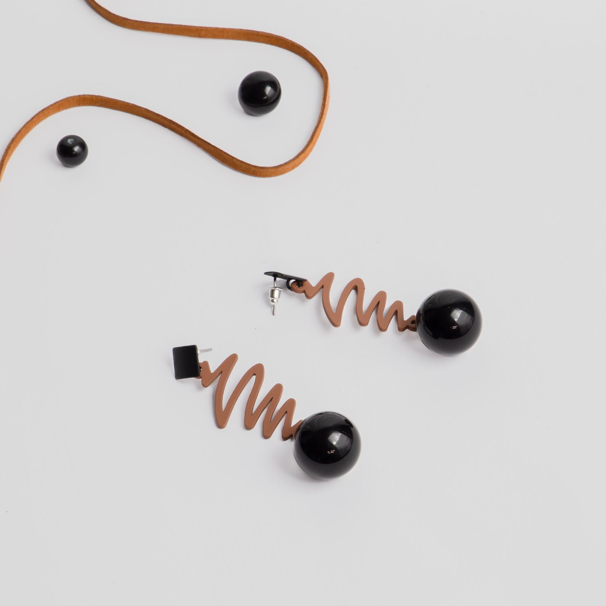 Crecei zigzag cu perle si cu textură de silicon - Negru, Maro