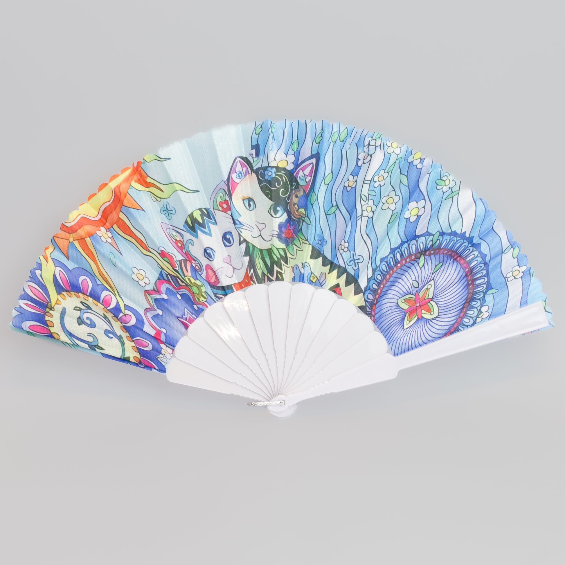 Evantai pliabil ușor, 23 cm, motiv pisici psy - Inocente
