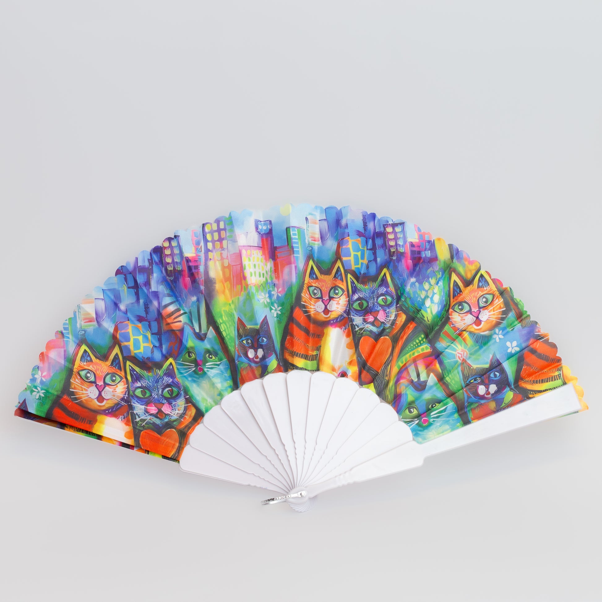 Evantai pliabil ușor, 23 cm, motiv pisici psy - Mirate
