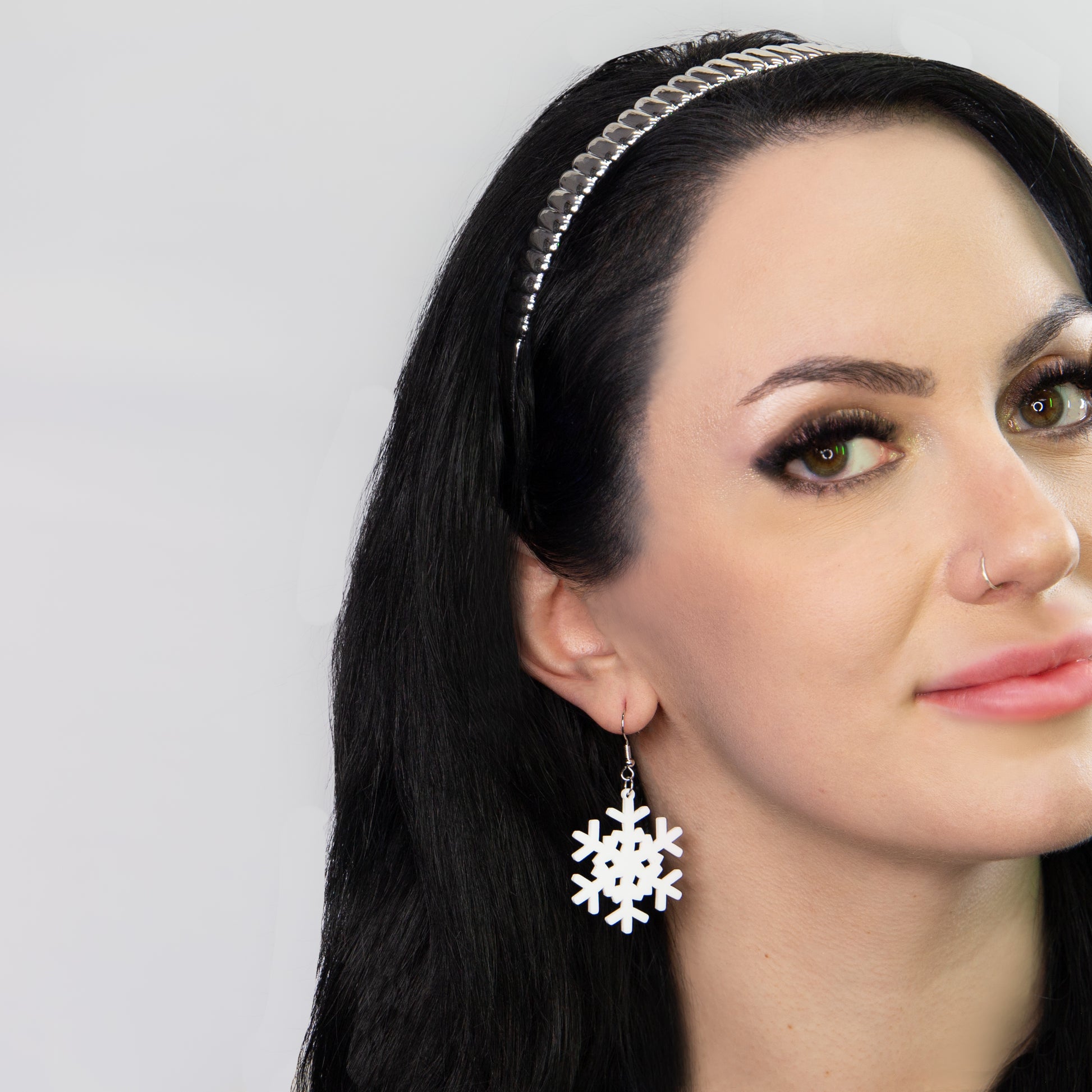 Set cercei cu motive de Crăciun Snowflake Duo, 2 perechi - Alb, Roz