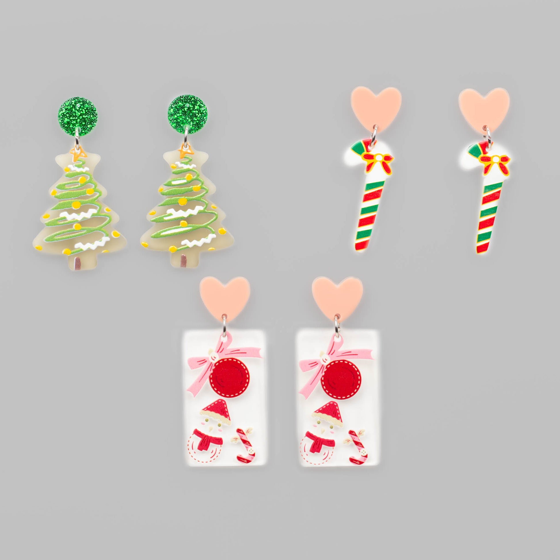 Set cercei cu motive de Crăciun, winter vibes, 3 perechi