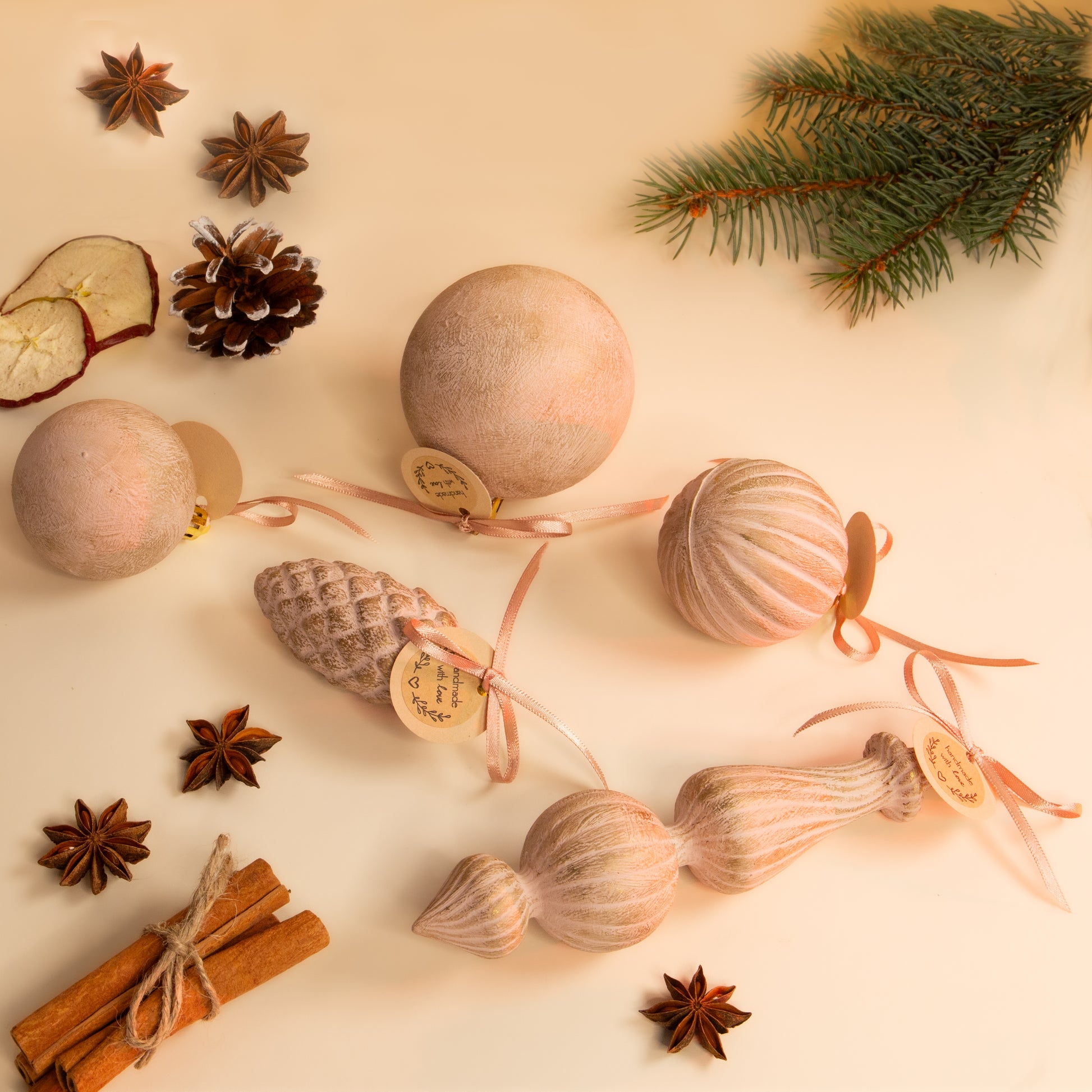 Set globuri handmade de Crăciun – Vintage Pink Glow adaugă o notă subtilă de romantism decorului tău, prin nuanțe delicate de roz și finisaj vintage. Un set handmade, cu dimensiuni variate, perfect pentru un Crăciun luminos și sofisticat.